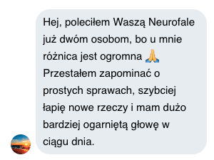 Kiedy zaczynałem swoją karierę, złożyłem sobie obietnicę, że nigdy nie polecę produktu, którego nie poleciłbym osobiście komuś bliskiemu — dlatego ja, moja żona i mój tata wszyscy używamy Neurofali Pamięci. A widzieć radość w oczach mojego taty, gdy jego jasność umysłu i energia wróciły z pełną siłą, było bezcenne.
