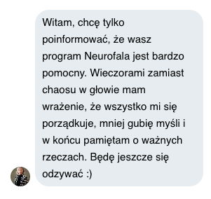 W rzeczywistości badania pokazują, że najlepszym „ćwiczeniem” dla pamięci jest nauka nowego języka, bo jej efekt poznawczy fizycznie zmienia strukturę mózgu. Właśnie dostałem list od Katarzyny, która po używaniu Neurofali Pamięci zaczęła uczyć się francuskiego. Wyobraź sobie minę znajomego, kiedy siadasz w kawiarni… i zamawiasz po francusku!